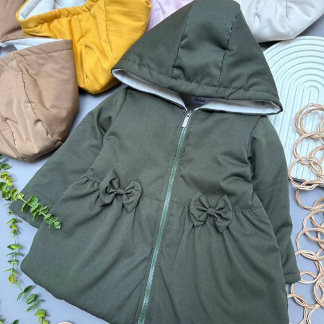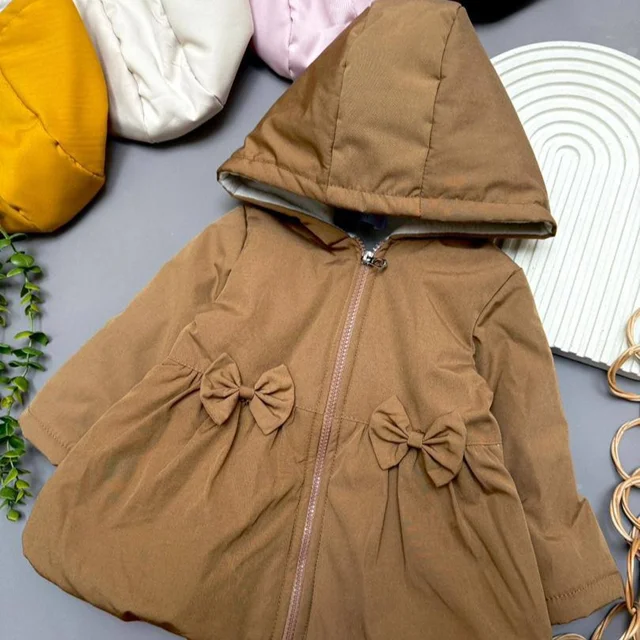 کاپشن دخترانه پاپیوندار در رنگهای متنوع و جذاب مثل صورتی ملایم، خردلی، قهوهای و کرم عرضه میشود تا هر والدینی بتوانند متناسب با سلیقه خود و شخصیت کودکشان انتخاب کنند.