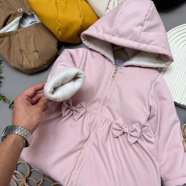 کاپشن دخترانه پاپیوندار گرم و نقلی | مناسب 1 تا 4 سال مثل پتوی نرم