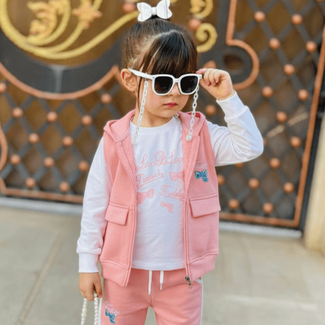 یک دست لباس کامل با این قیمت و جنس تضمینی باورتون میشه؟ این ست جذاب لباس دخترانه اسپرت و شیک شامل سه تکه کاربردی است:هودی بدون آستین قرمز با کلاه و زیپ جلو، دو جیب کاربردی و گلدوزی به همراه پاپیونهای فانتزی تیشرت سفید آستین بلند با چاپ و گلدوزی زیبا "BlooBloom Family" که هارمونی رنگ فوقالعادهای با هودی ایجاد کرده شلوار قرمز راحتی با کمر کشی و گلدوزی پاپیون آبی که راحتی و استایل اسپرت را همزمان فراهم میکنداین لباس کودکانه با دوخت تمیز و پارچه نرم و لطیف، انتخابی ایدهآل برای فصلهای پاییز و زمستان است. ترکیب رنگ قرمز و سفید جلوهای شاد و پرانرژی به استایل کودک شما میبخشد.