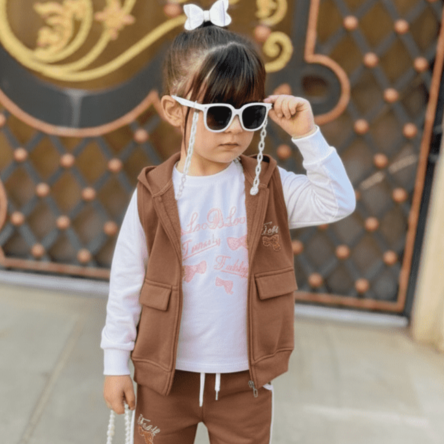 ست لباس دخترانه اسپرت سه تکه دارای :