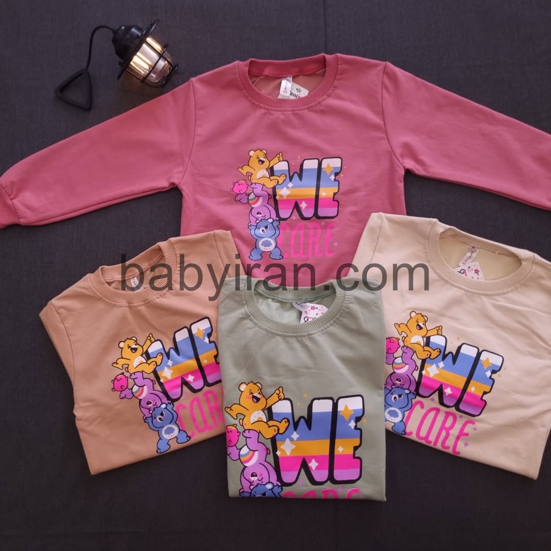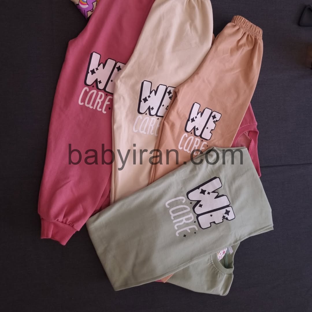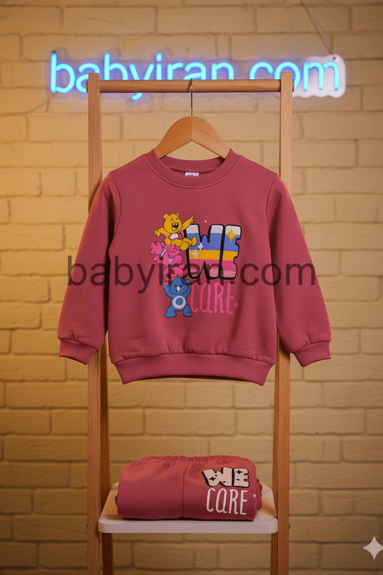 طراحی چاپی خرسی رنگی با عبارت We Care جلوهای شاد و کودکانه به این ست داده که برای استفاده در مدرسه، مهد کودک، مهمانیهای دوستانه و گردشهای روزانه کاملاً مناسب است. کشبافت سرآستین و پایین لباس باعث فیت بهتر روی بدن کودک میشود و دوخت تمیز و ظریف آن راحتی و زیبایی را همزمان فراهم میکند.