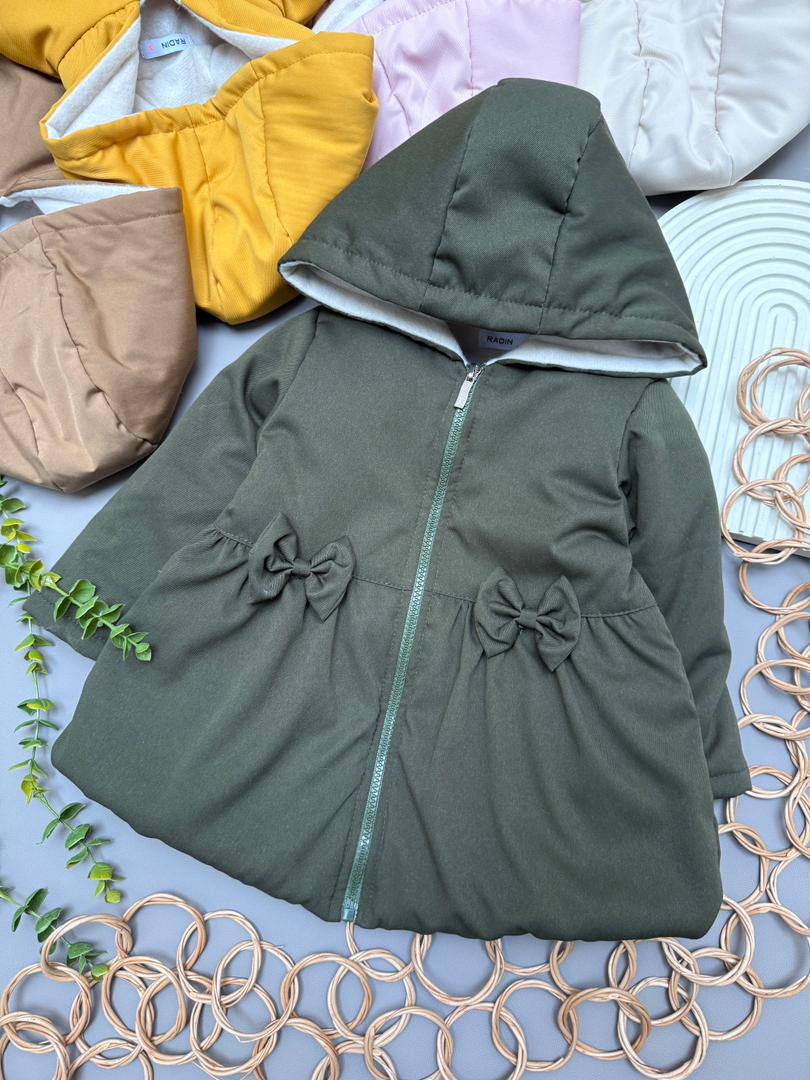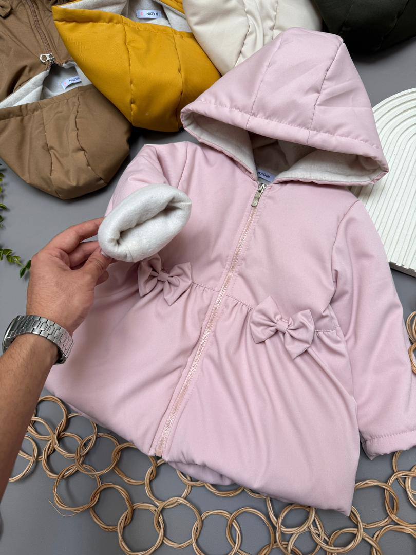 کاپشن دخترانه پاپیوندار گرم و نقلی | مناسب 1 تا 5 سال شیک و جذاب