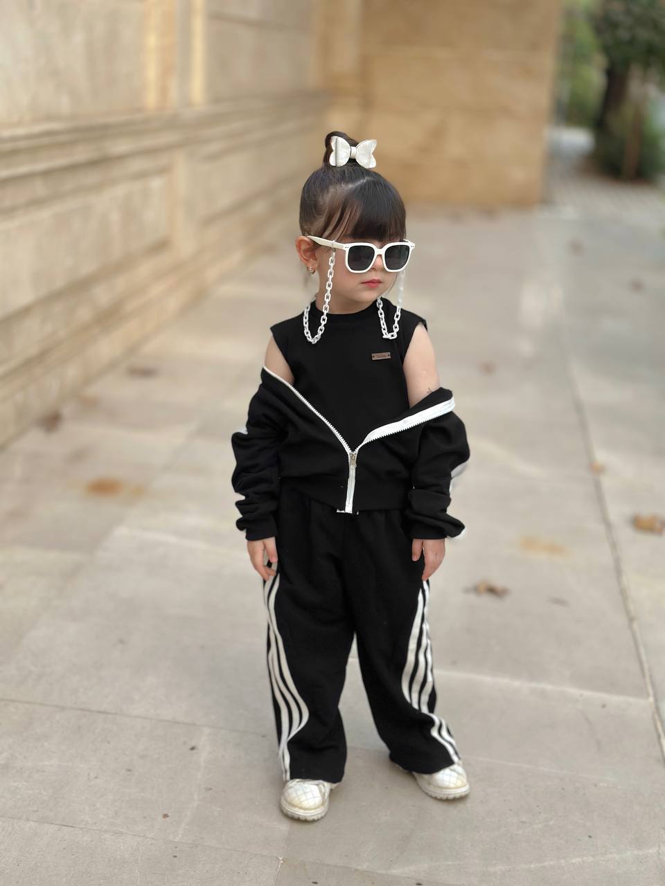 اگر به دنبال لباسی خاص و متفاوت برای دختر کوچولوی شیک‌پوش خود هستید، این ست سویشرت و شلوار باکسی اسپرت دخترانه دونخ بهترین انتخاب است.ترکیب طراحی اسپرت با طرح سه خط جذاب، به این ست ظاهری خاص و مدرن بخشیده است. راهنمای سایز پایین صفحه