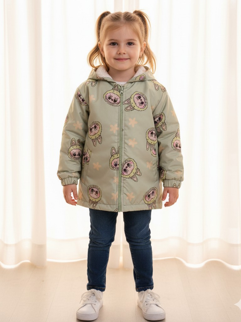 سوییشرت دخترانه داخل خز لبوبو ماچا – گرم، ضد آب و فوقالعاده دوستداشتنی 🌿